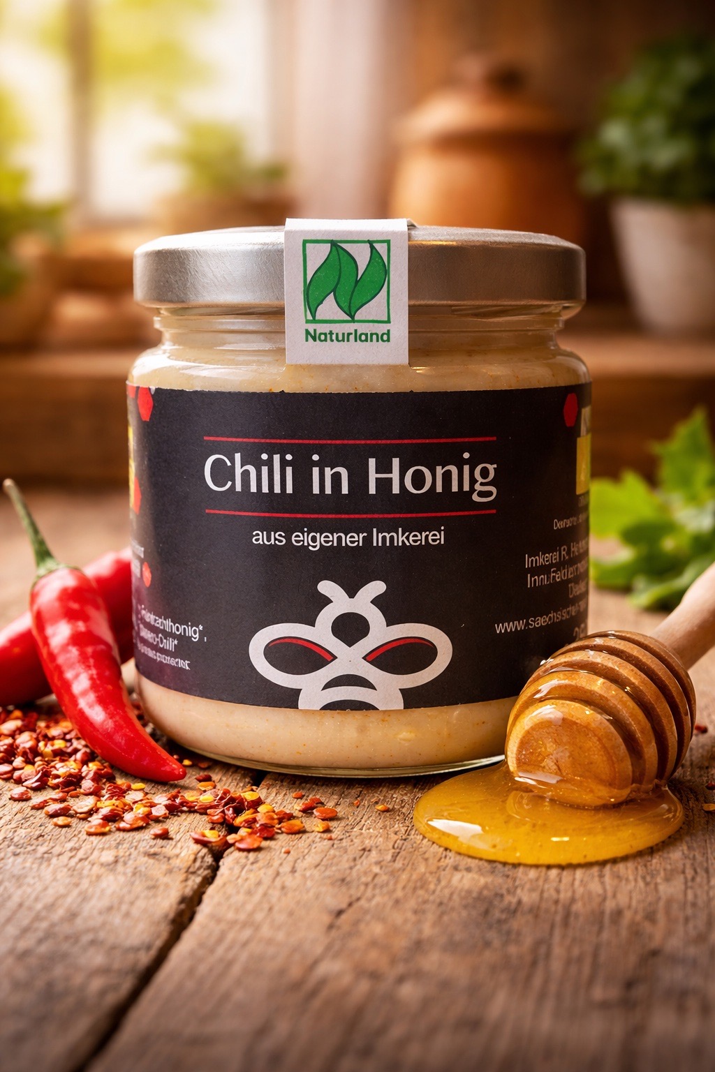 Chili in Honig ist perfekt für alle, die das Abenteuer im Geschmack suchen. Verwenden Sie diesen feurigen Genuss als besonderen Akzent in Ihrer Küche oder genießen Sie ihn einfach pur für einen scharfen Kick im Alltag. Ein aufregendes Geschmackserlebnis für alle, die es scharf mögen!