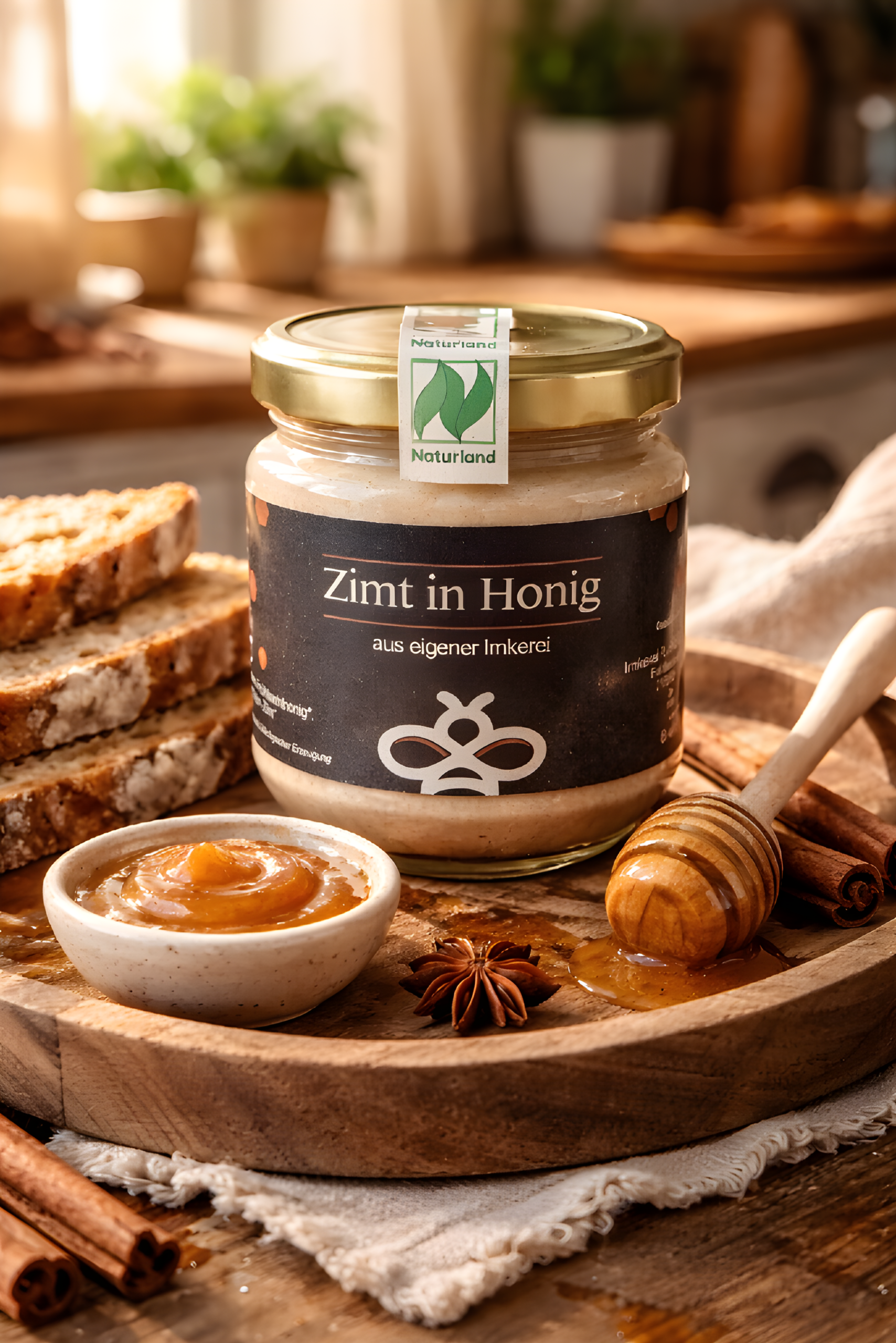 Erleben Sie die unwiderstehliche Kombination aus aromatischem Zimt und feinster Honigsüße – Zimt in Honig ist ein wahres Geschmackserlebnis, das Ihre Sinne verführt und Ihre Geschmacksknospen begeistert. Der intensive, warme Geschmack von hochwertigem Bio-Cylon-Zimt harmoniert perfekt mit der natürlichen Süße von unserem Bio-Frühtrachthonig, was dieses Produkt zu einem idealen Begleiter für viele Gelegenheiten macht.